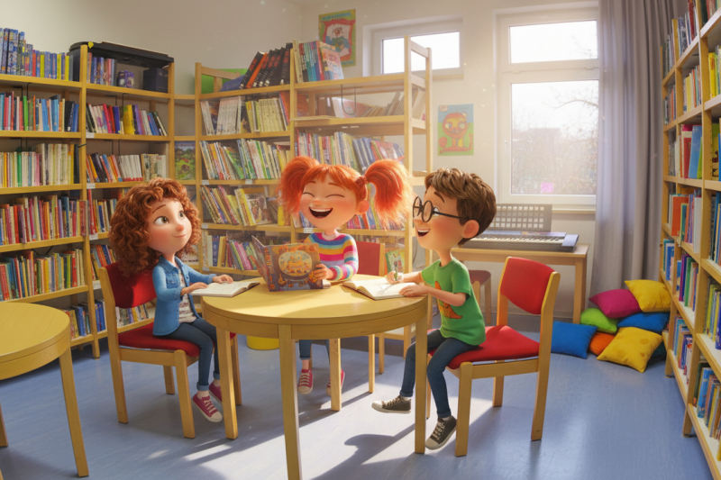 - Kreatives Arbeiten zu Geschichten: Bilder malen, Comics, alternative Enden schreiben, kleine Szenen spielen
